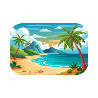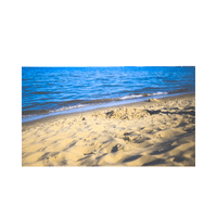 Sandy or rocky land near the sea or ocean. People often visit beaches for relaxation.