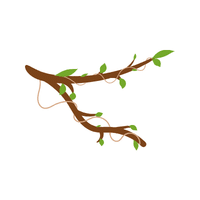 A woody arm growing from a tree trunk. Branches hold leaves, flowers, and fruits.