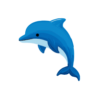 A smart sea animal with a smooth body. Dolphins communicate with sounds and swim in groups.