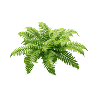 A green plant with feathery leaves. It grows in cool, shady areas and produces spores, not seeds.