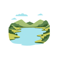 A large body of water surrounded by land. It stores fresh water and is home to fish and plants.