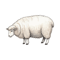 A gentle animal with thick wool. Sheep are raised for wool and meat.