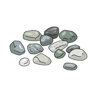 A small piece of rock. Stones are often used for building and can be found in rivers and fields.