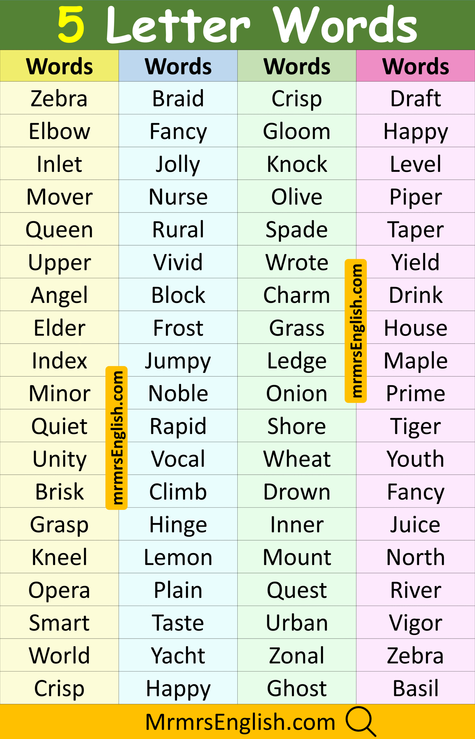 5 Letter words Examples in English