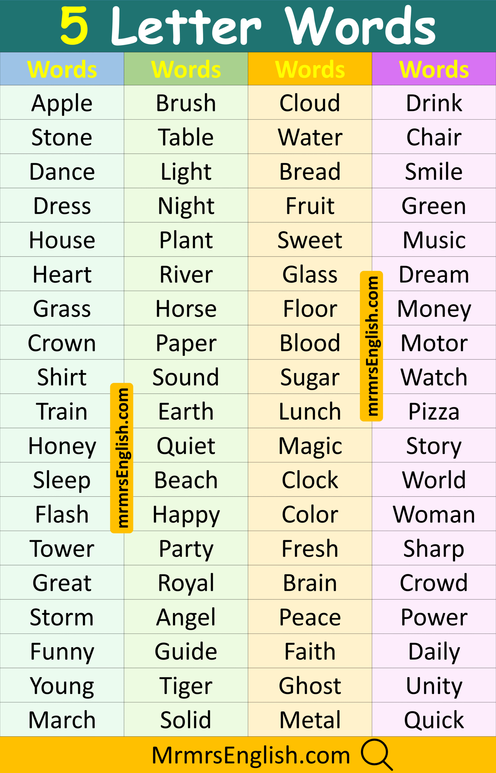 Daily used 5 Letter words in English and Pictures