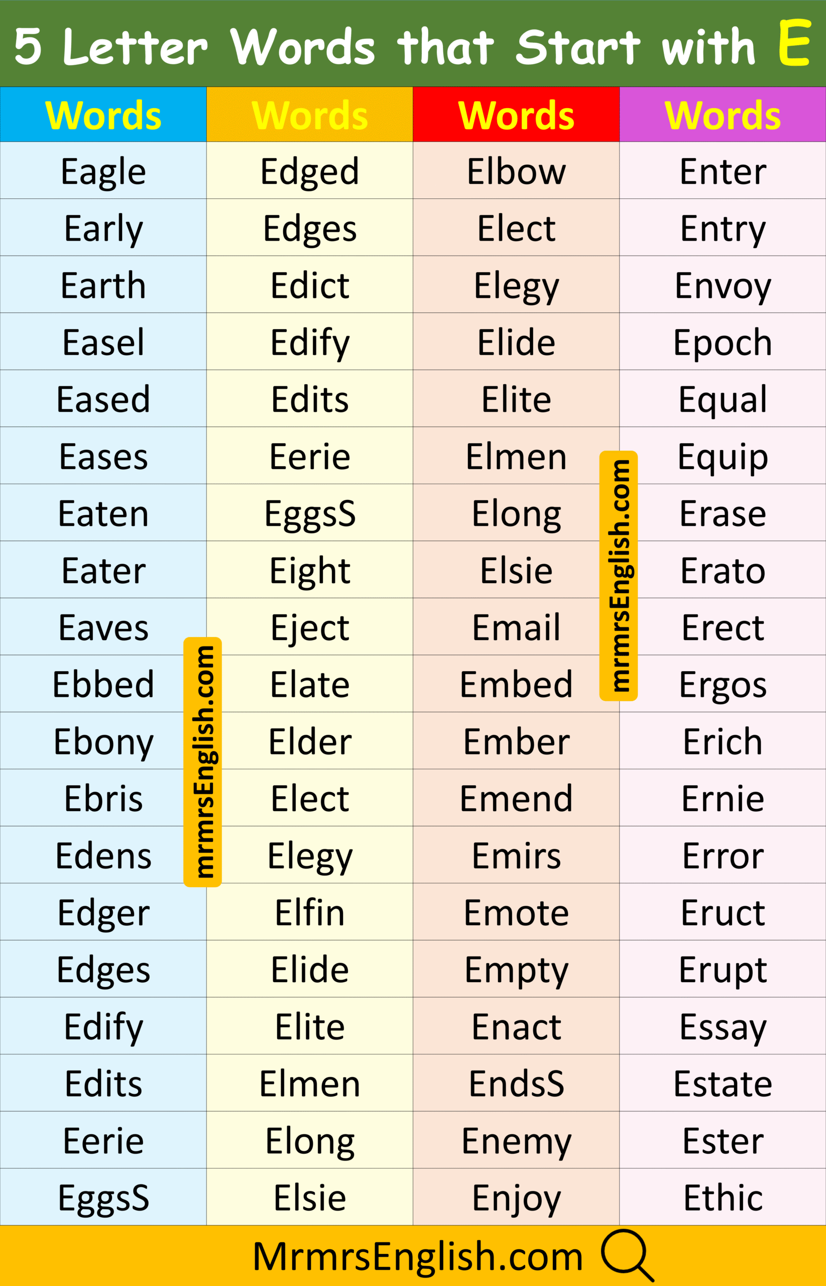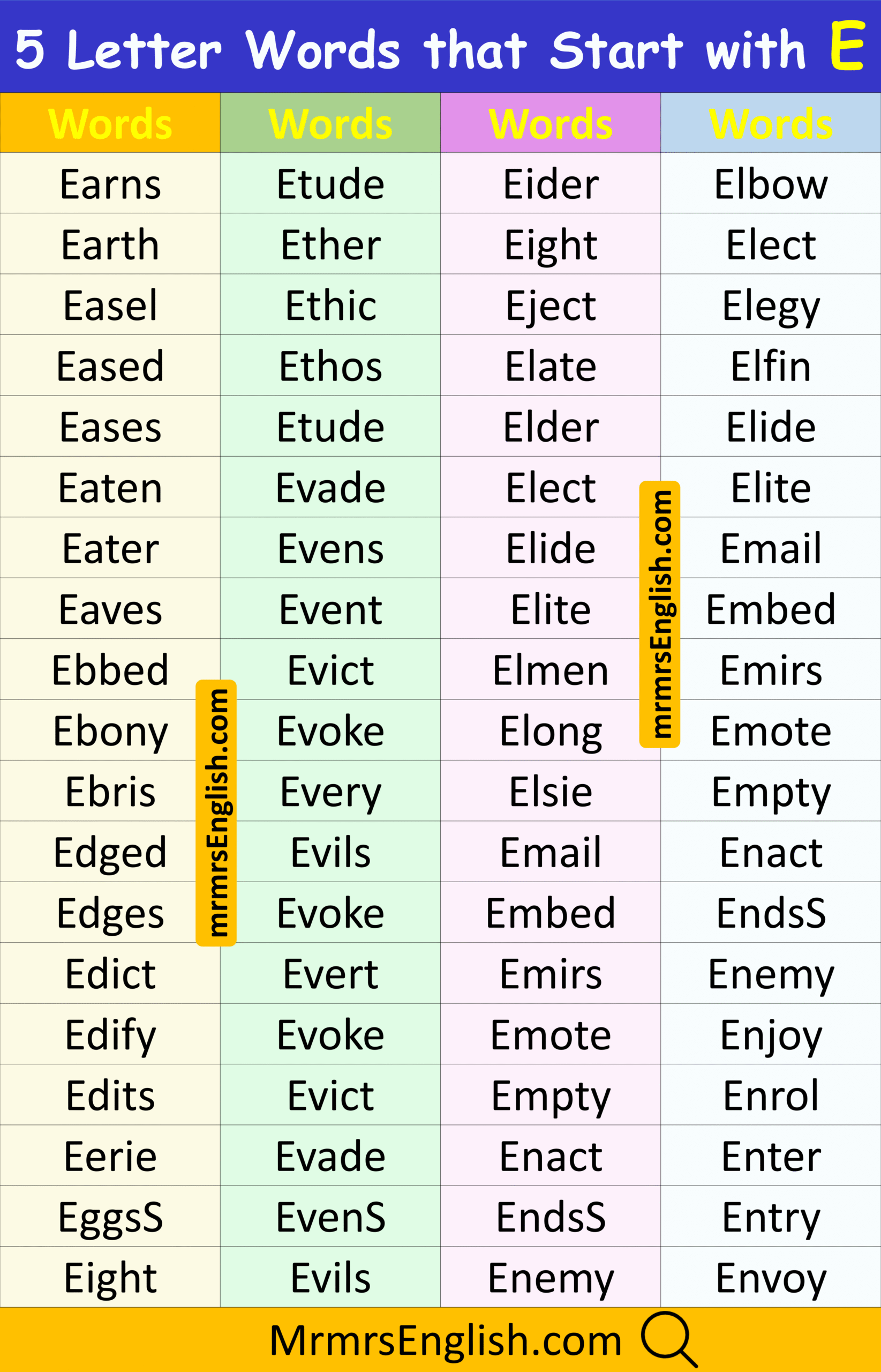 Learning five-letter words is a simple and effective way to improve English vocabulary and communication skills. Words that start with the letter E are very common in everyday conversations, reading, and writing. For students, learners, and even word game players, these words are useful to study and remember. When learned with the help of pictures, they become even easier to understand and recall. In this article, we will learn the 5-letter words that start with E in English with pictures to make learning fun, clear, and interesting.