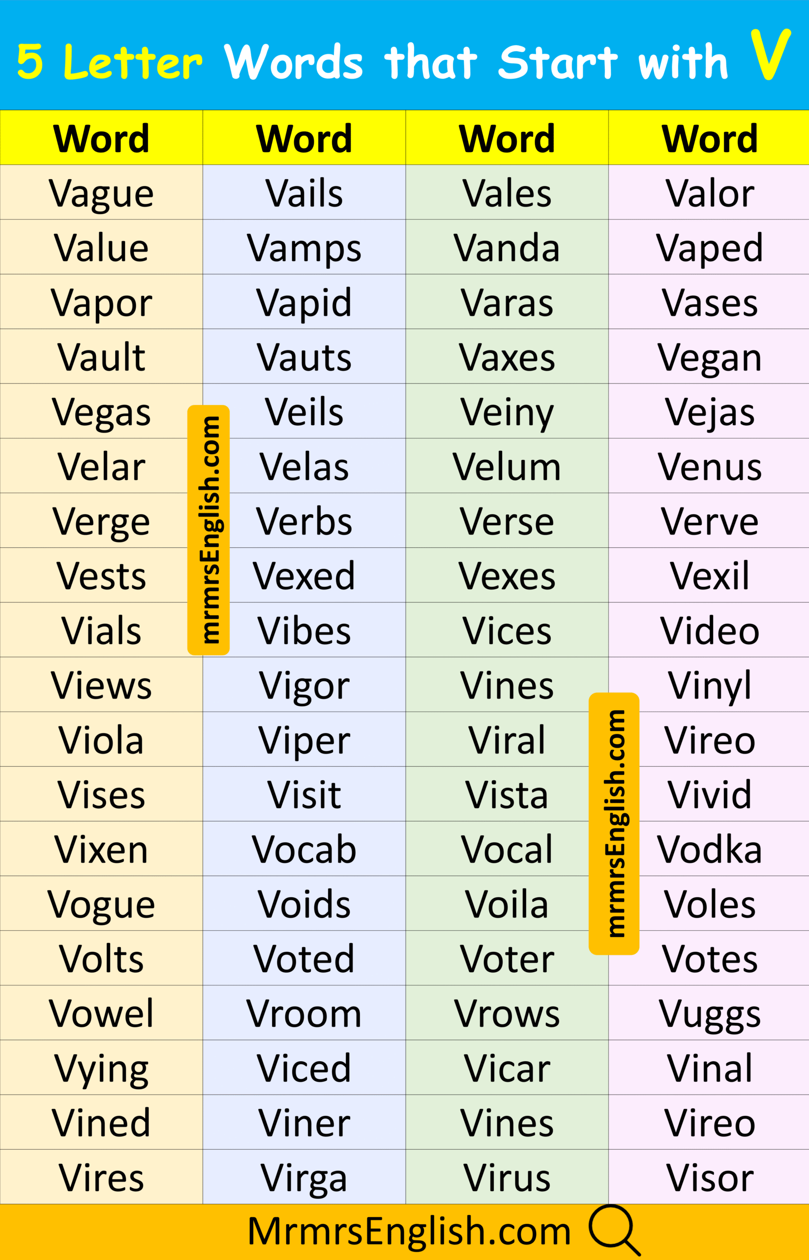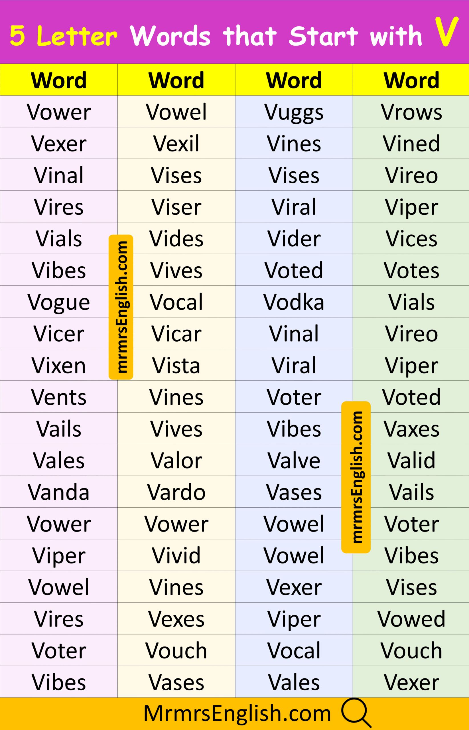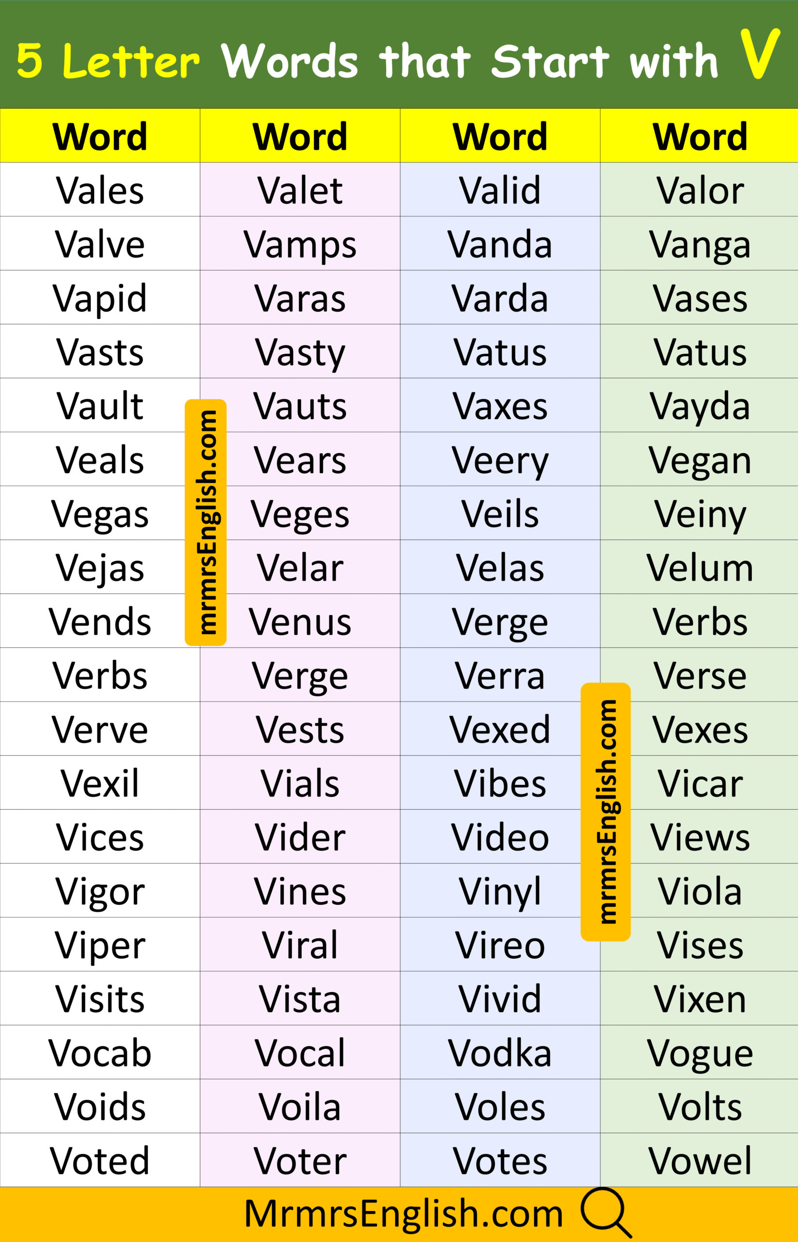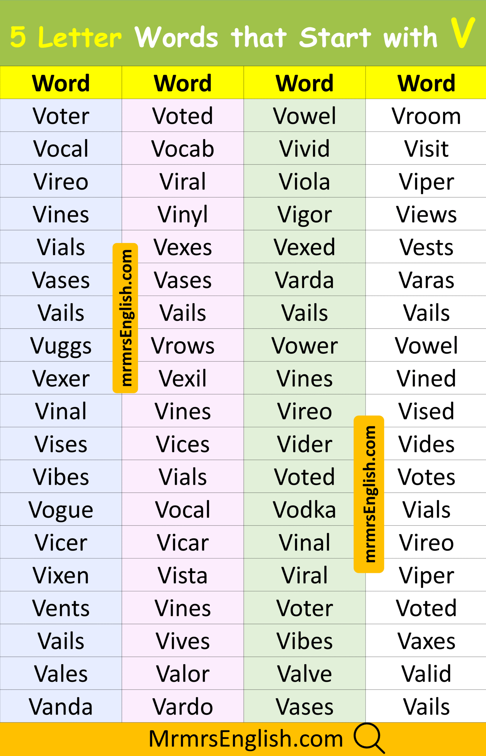 Learning short English words is a helpful way to build strong vocabulary skills, especially for students and beginners. Five-letter words are commonly used in reading, writing, and daily conversations, making them important to understand and remember. In this article, you will learn 5 Letter Words that start with V, along with clear pictures. These visuals help learners recognize each word quickly and connect its meaning with real-life examples, making vocabulary learning easier, more engaging, and effective.