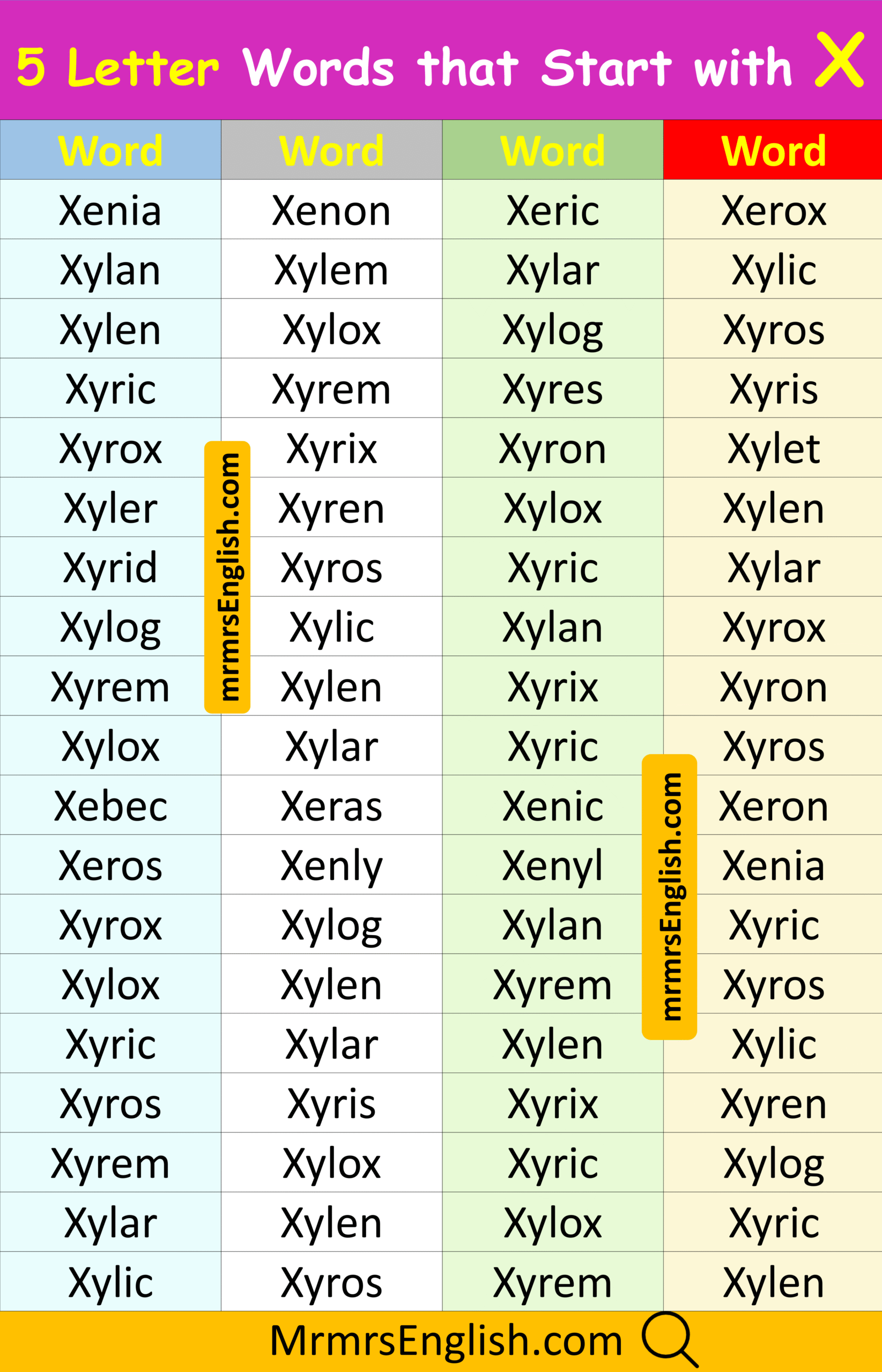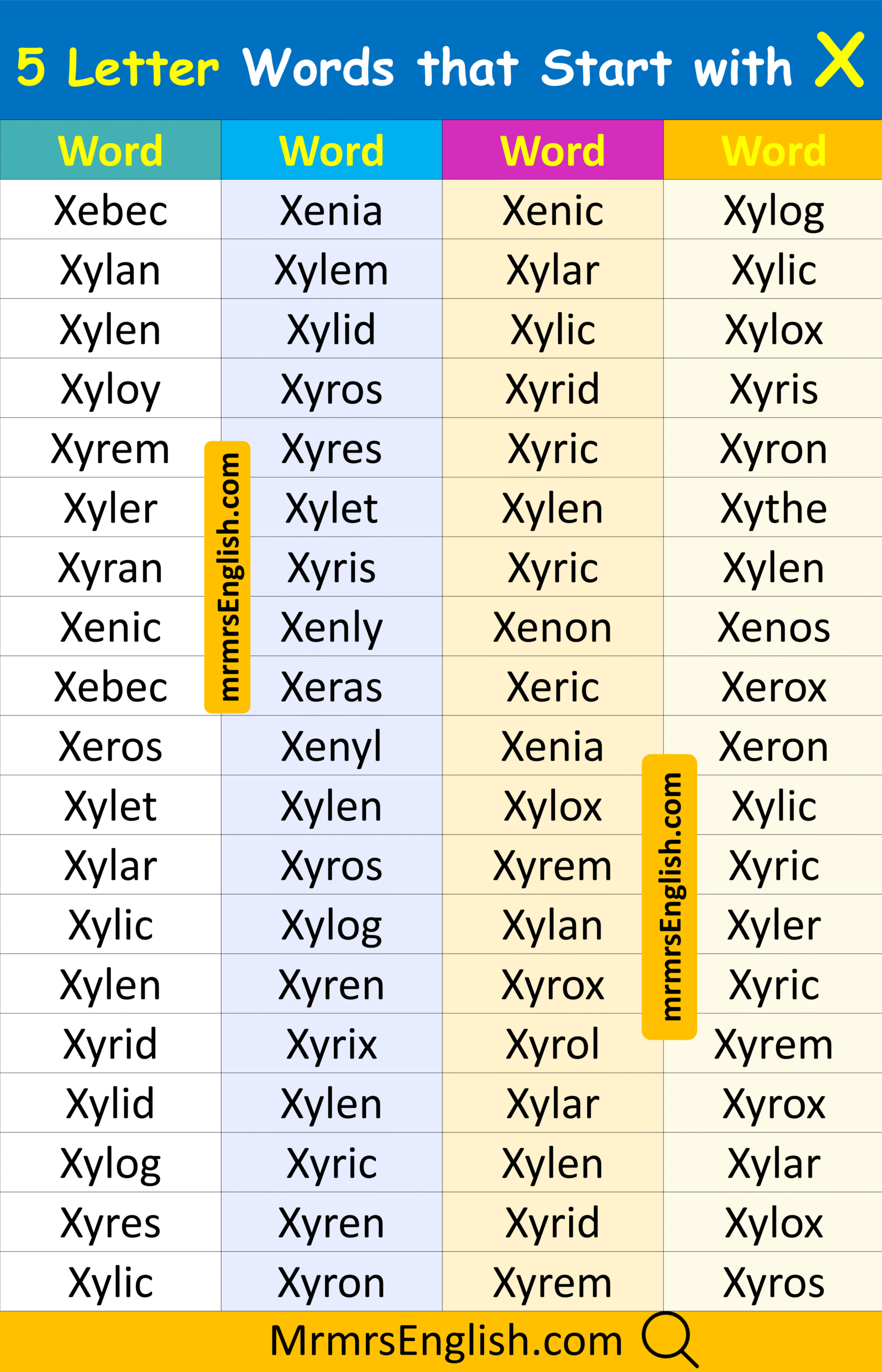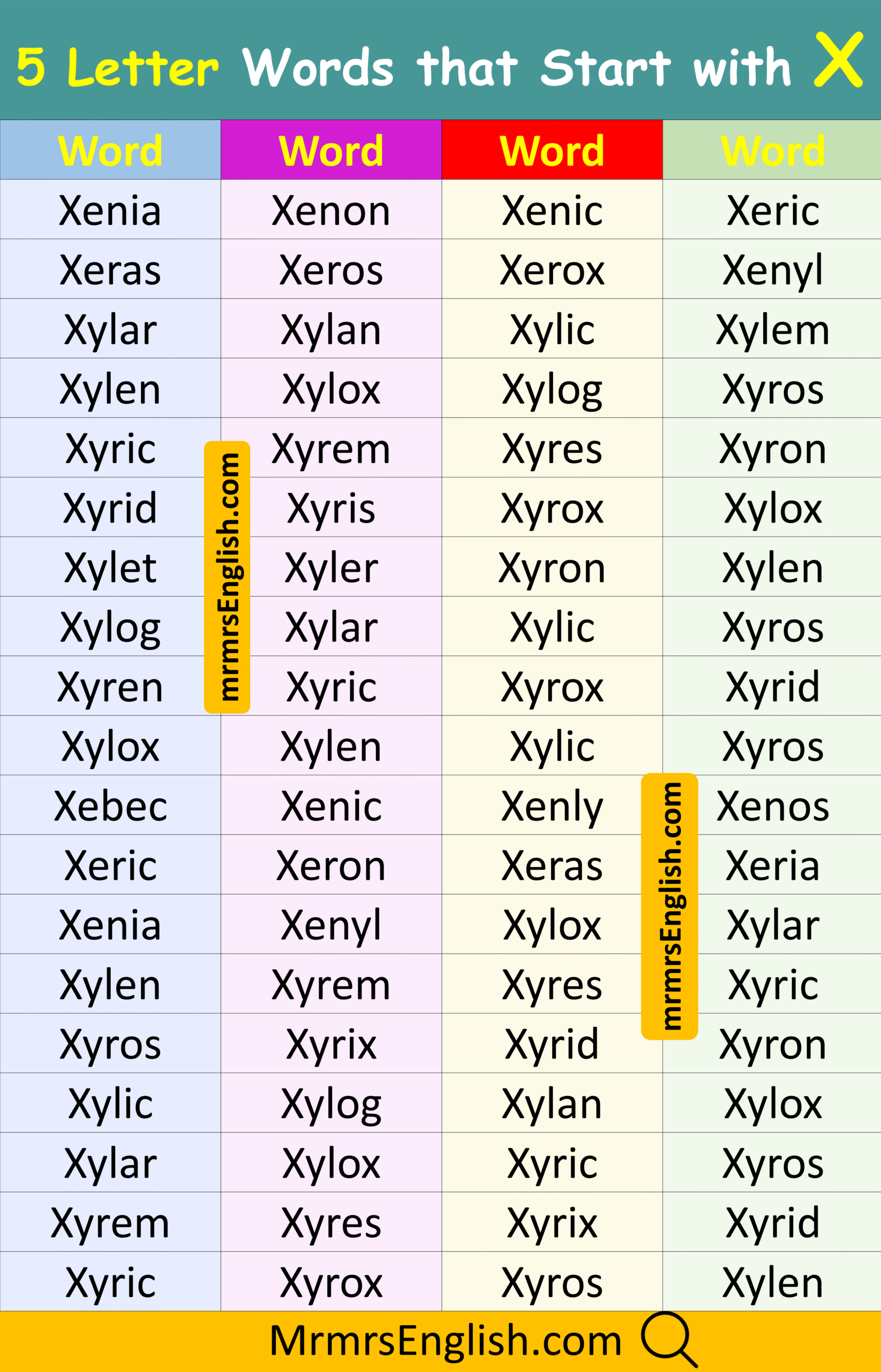 Learn 5 Letter Words that Start with X in English