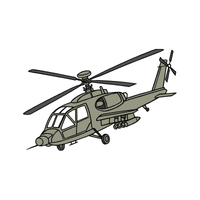 A military helicopter equipped with weapons used to support ground forces or defend territories.