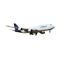 A flying vehicle with wings and engines that carries people or goods through the air.