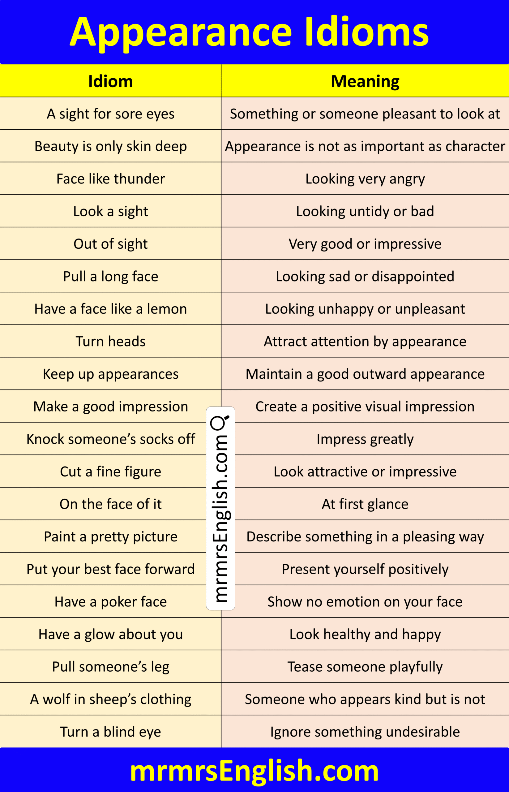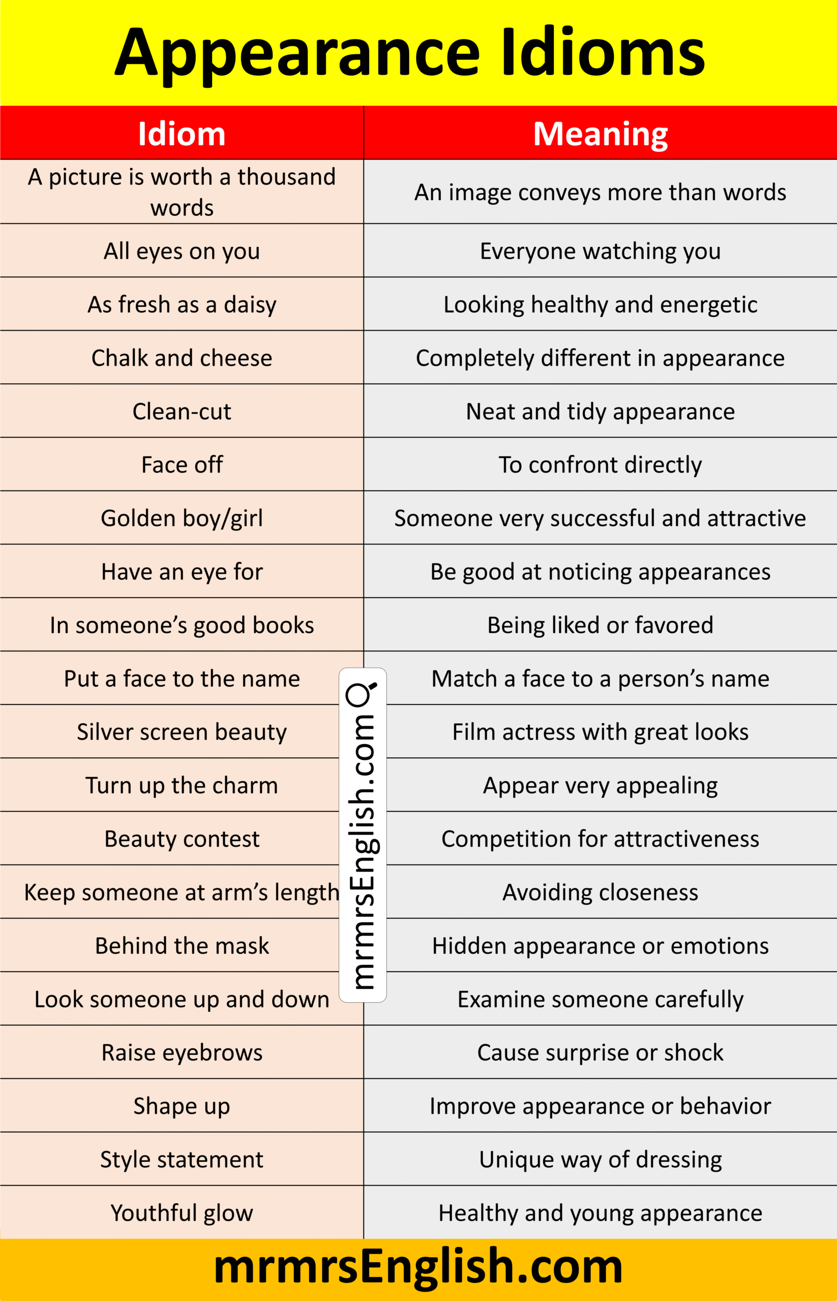 Popular Appearance Idiom and Meaning with Images