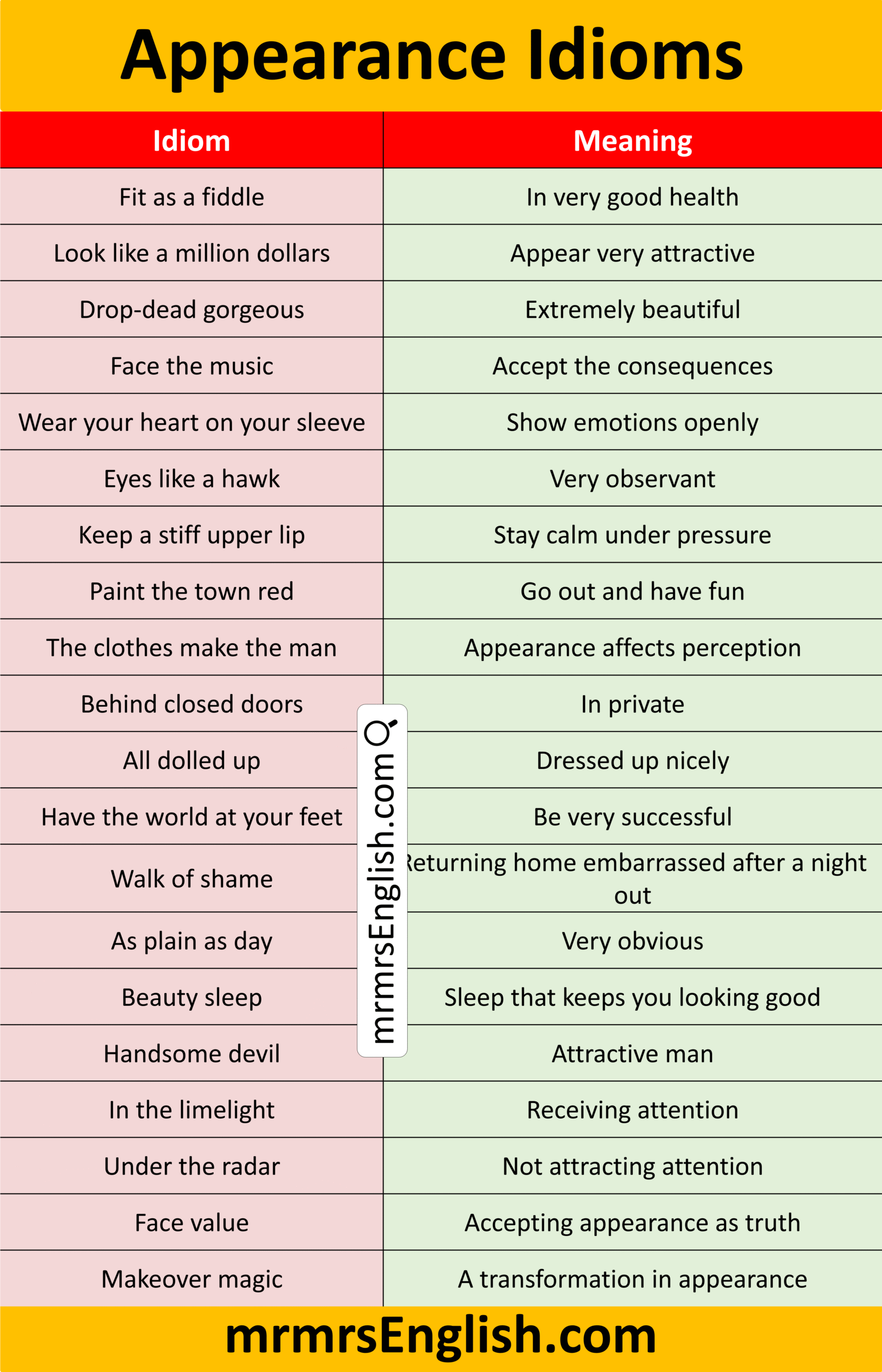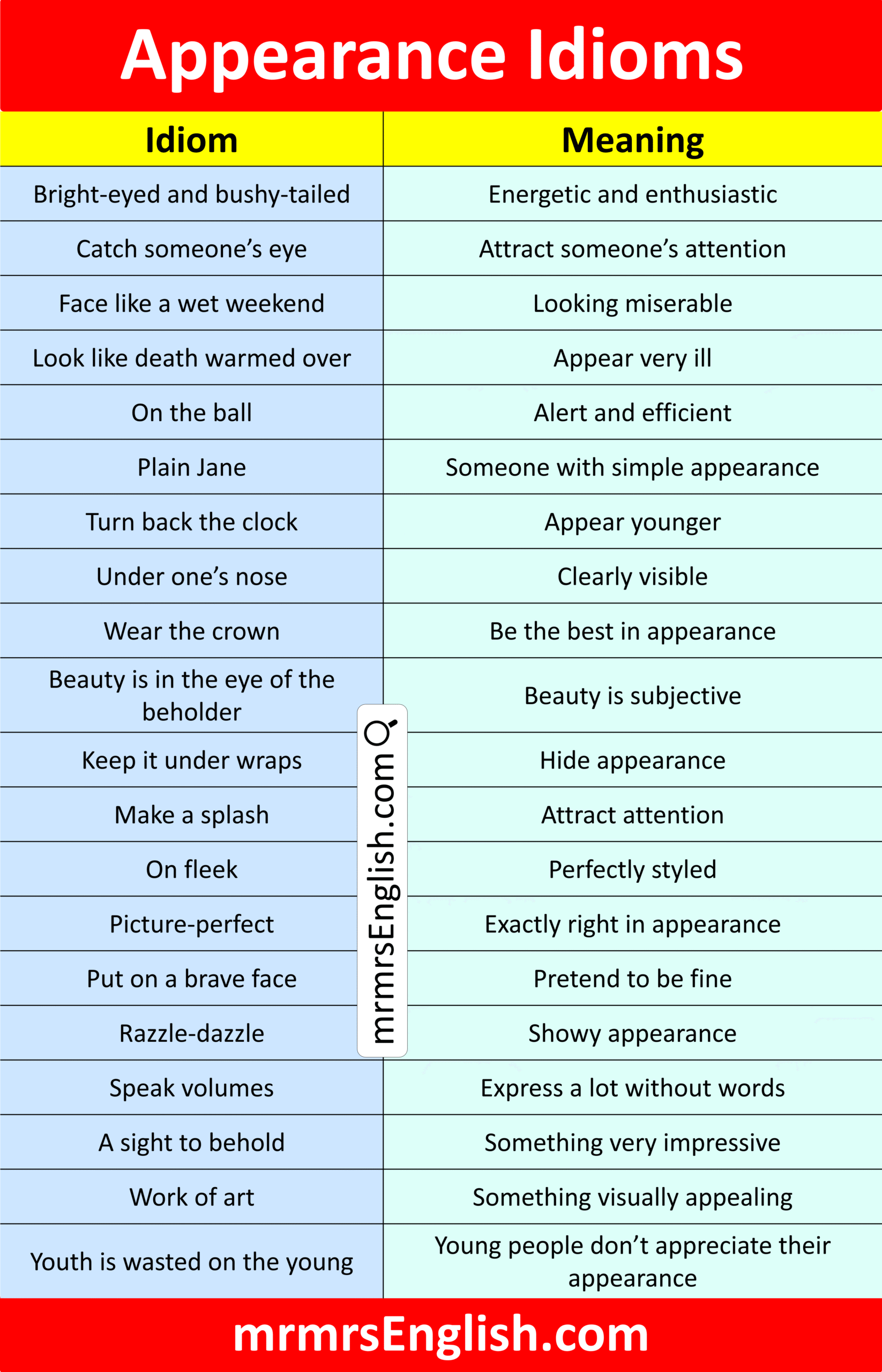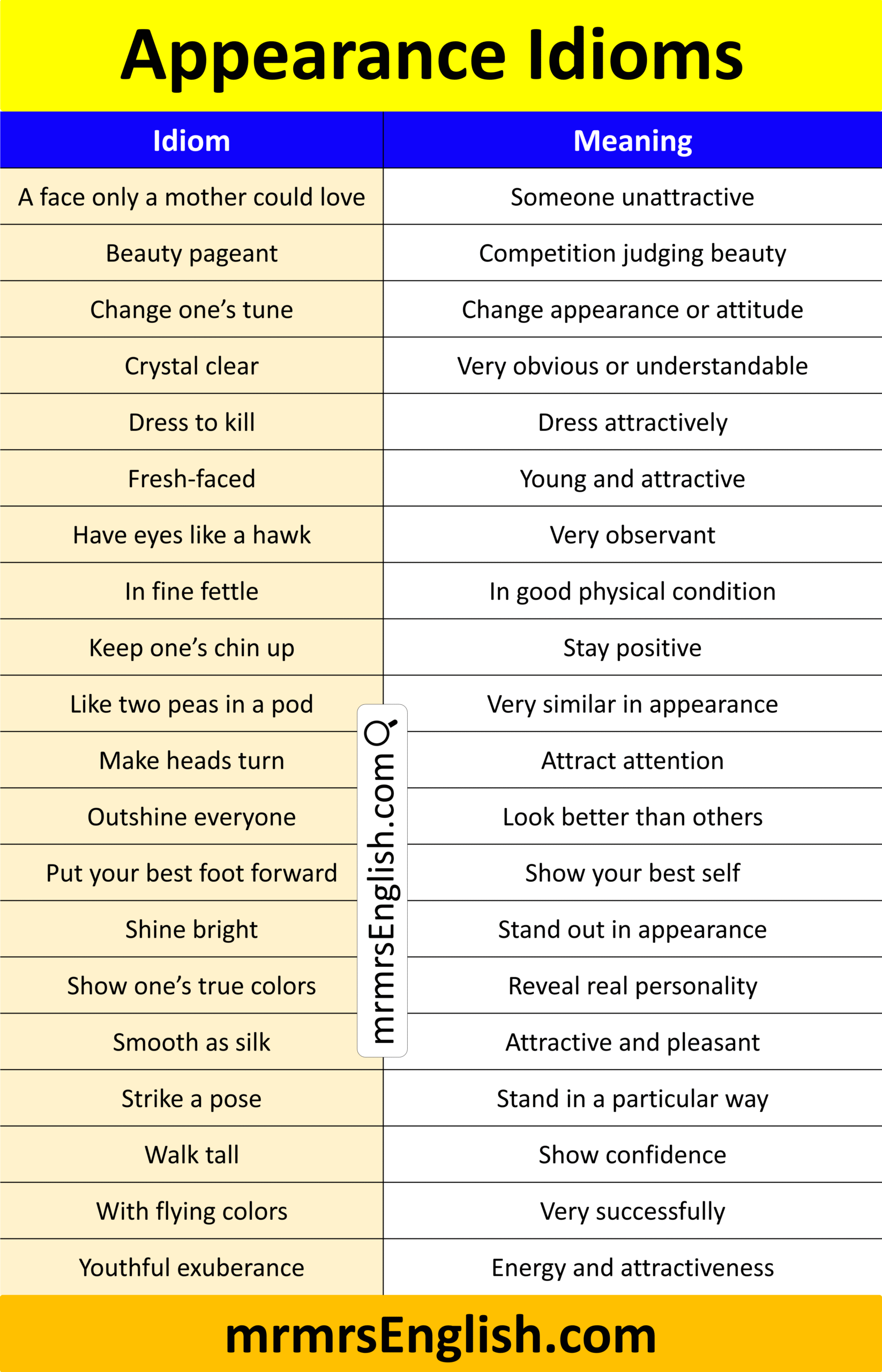 Appearance Idioms in English with their Meanings and Pictures