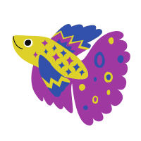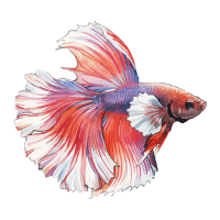 Koi Betta displays multicolored marble patterns resembling koi fish, with unpredictable color changes during growth.