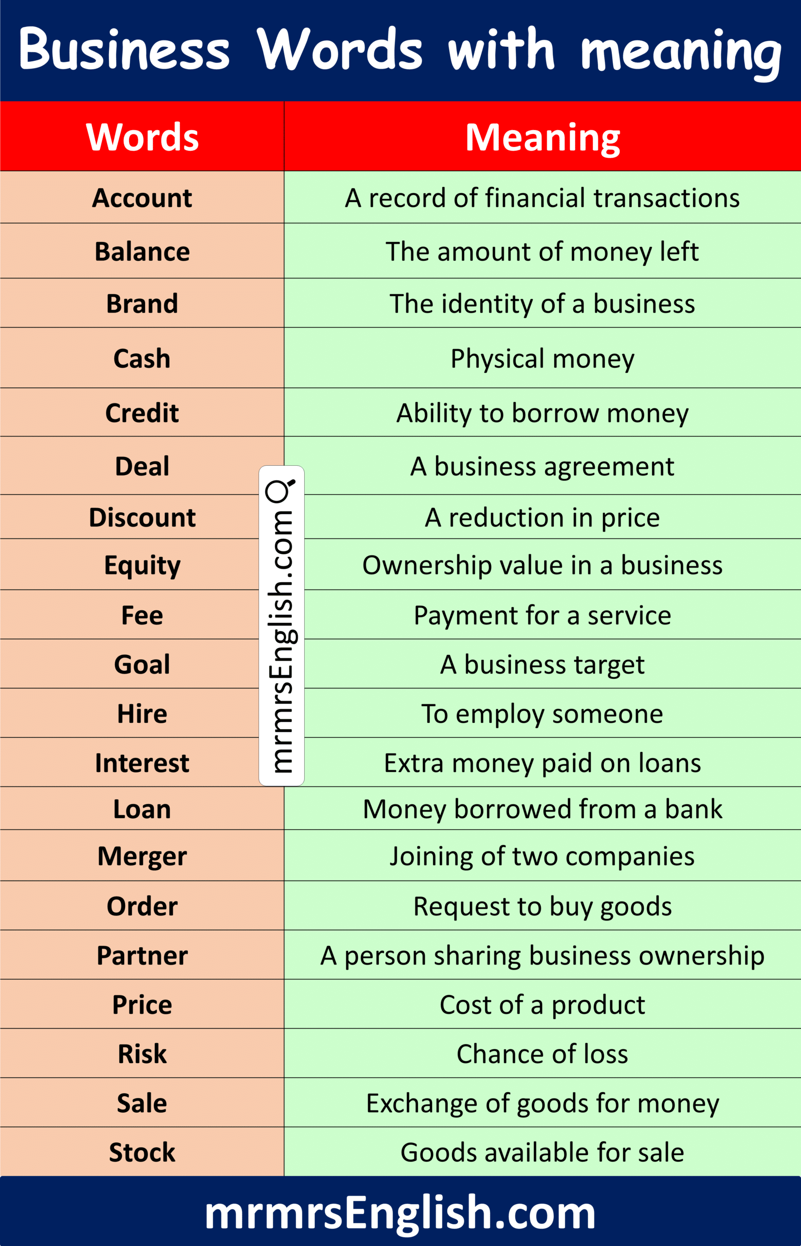Master Business Words with meaning in English