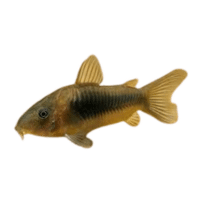Bright golden-colored catfish, peaceful, decorative, suitable for ornamental aquariums.