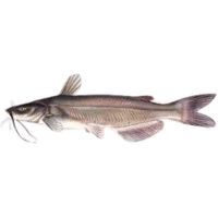 Common freshwater catfish, fast-growing, peaceful, widely used in aquaculture and fishing.