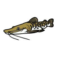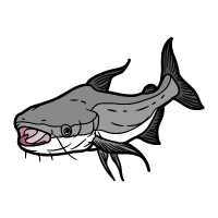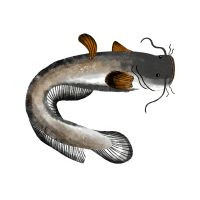 Large predatory catfish with flat head, aggressive, found in freshwater rivers and lakes.