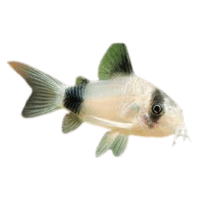 Small catfish with panda-like markings, peaceful, decorative, and suitable for community tanks.