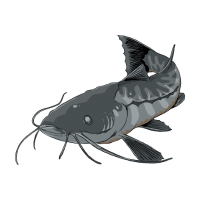 Large river catfish, strong, aggressive, found in fast-flowing freshwater rivers.