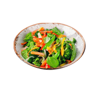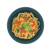 Soft noodles tossed with vegetables and meat in a light soy-based sauce.