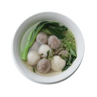 A light broth with soft fish balls made from ground fish, often served with vegetables or noodles.
