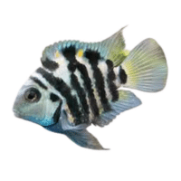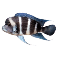 Black and white striped cichlid, hardy, aggressive when breeding, and easy to care for.