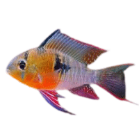 Small, colorful dwarf cichlid, peaceful, good breeder, adaptable, and easy to care for in tanks.