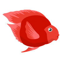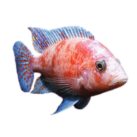Red Devil cichlid, bright red-orange body, aggressive, territorial, requires large tank and experienced care.