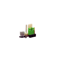 A row of metal pins on a board used to attach cables, buttons, or small devices.