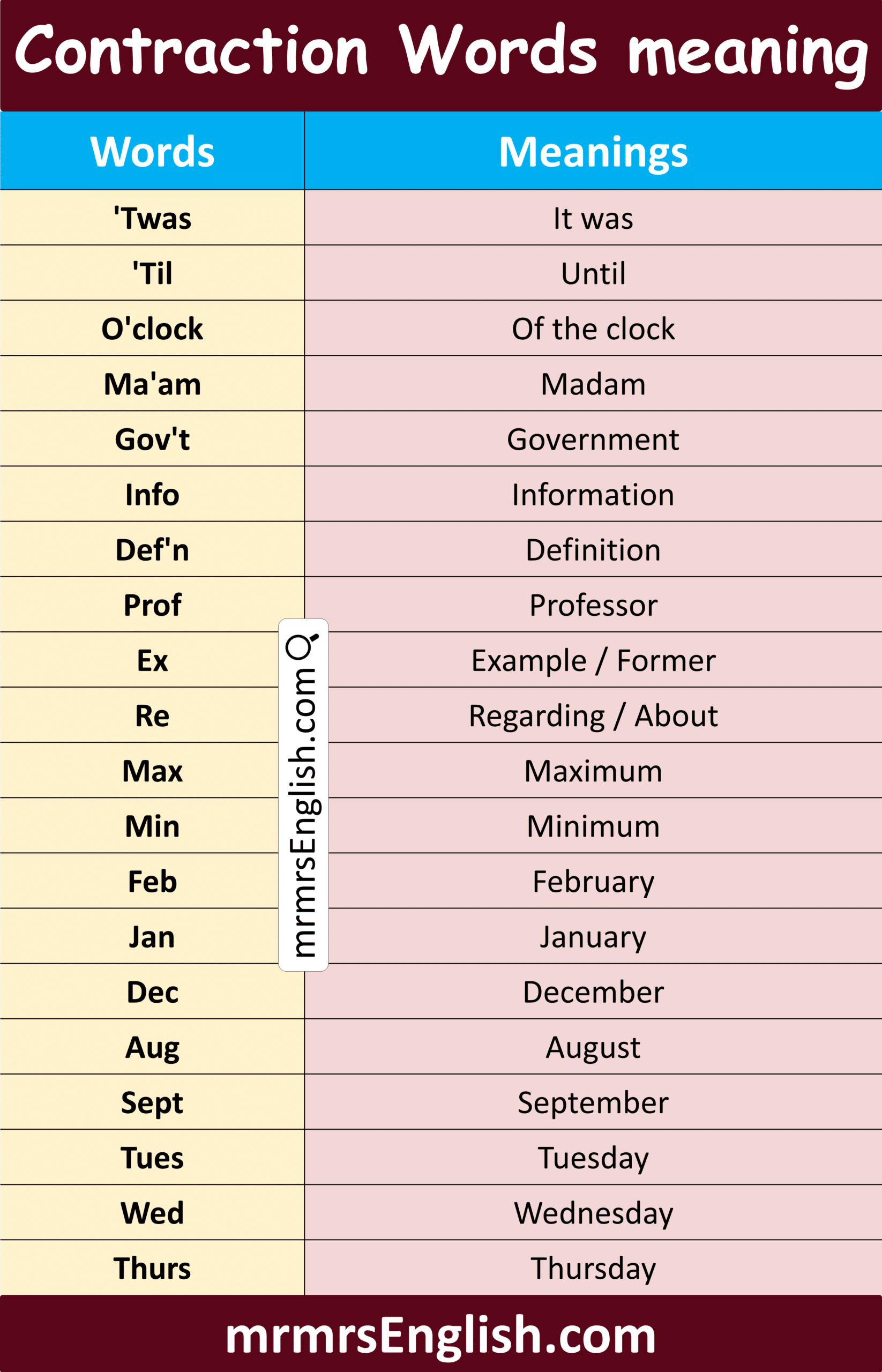 Contraction words are short forms made by joining two words together, usually with an apostrophe. For example, do not become don’t and I am becomes I’m. These forms are commonly used in daily conversation and informal writing. Learning contractions helps students speak more naturally and understand spoken English more easily. It also improves reading skills because many books and dialogues use short forms. In this article, you will learn common contraction words in English with their meanings and pictures, making it simple to understand how they are formed and how to use them correctly in everyday sentences.