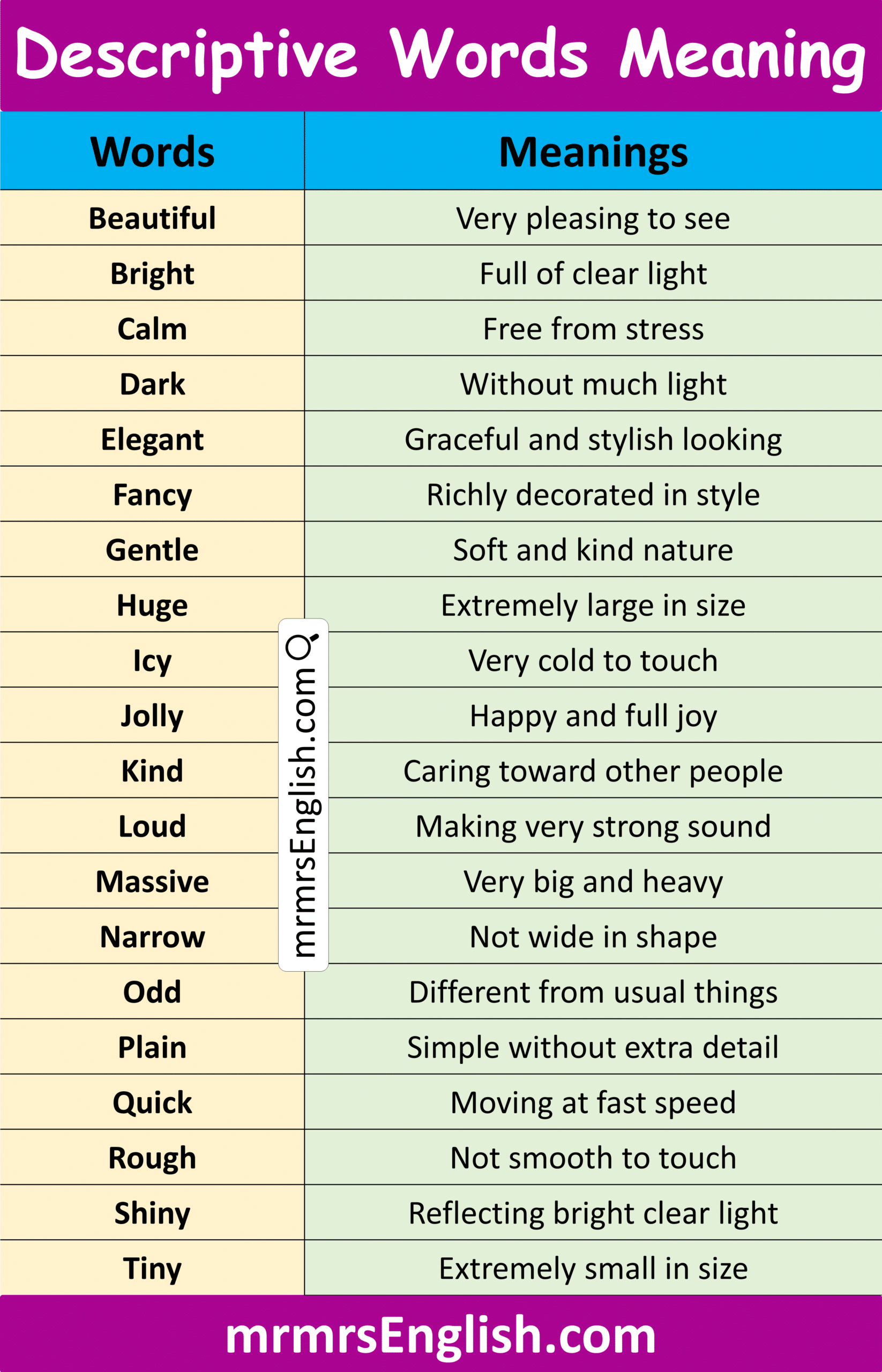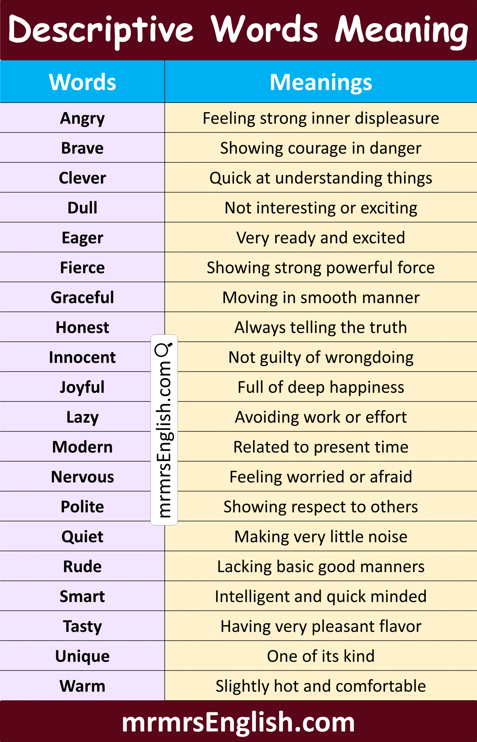 Popular Descriptive Vocabulary Words with Meanings