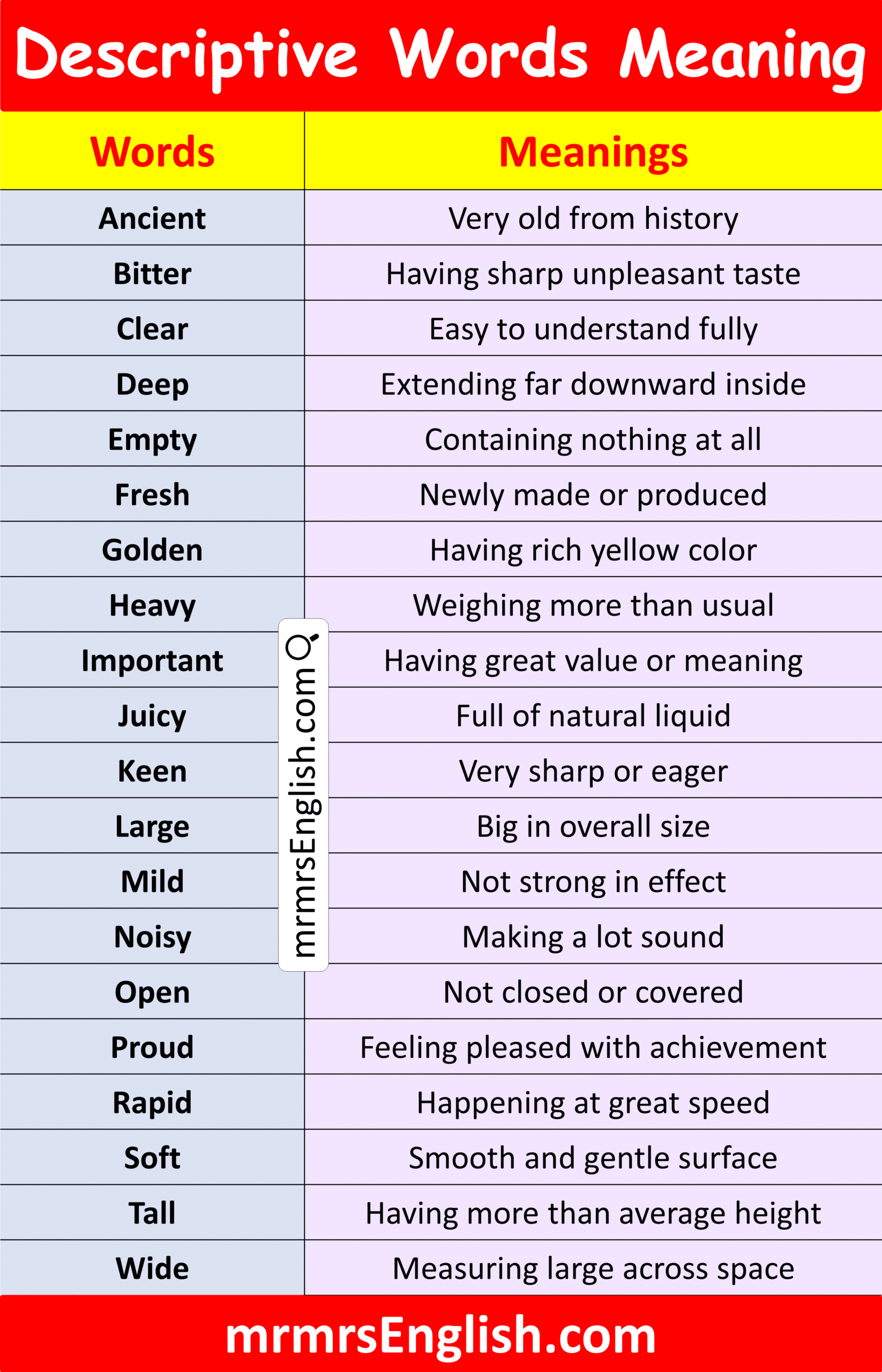Useful Descriptive Vocabulary with Meaning in English