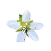 A simple flower with white petals and a yellow center, often growing in open sunny areas.