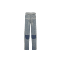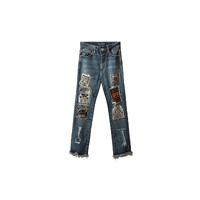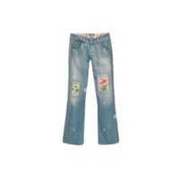 Jeans decorated or repaired with fabric patches; give a creative, vintage, or playful look.