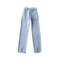 Jeans with a small opening or cut at the front hem; add a trendy and modern look.