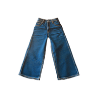 Jeans fitted at the top and wide from the knees down; give a bold and retro-inspired style.