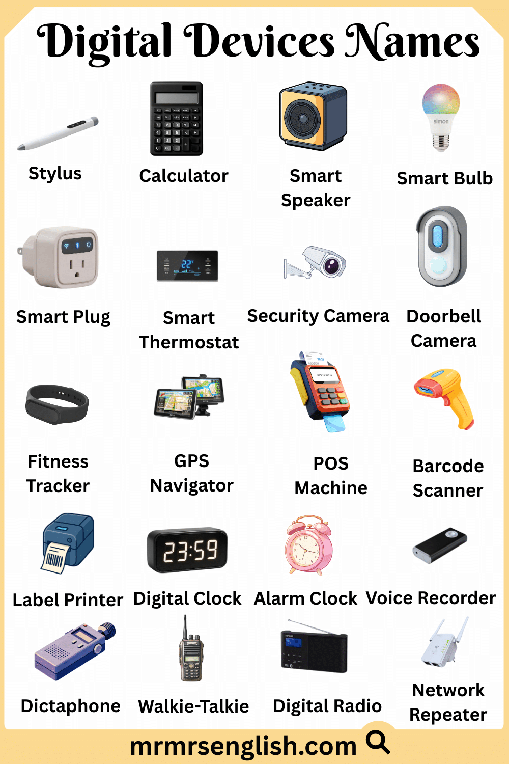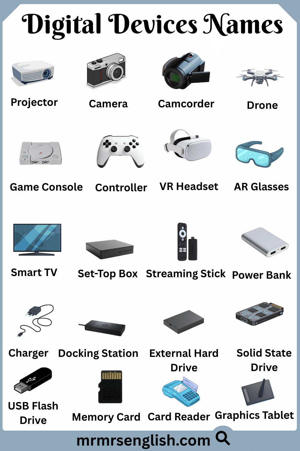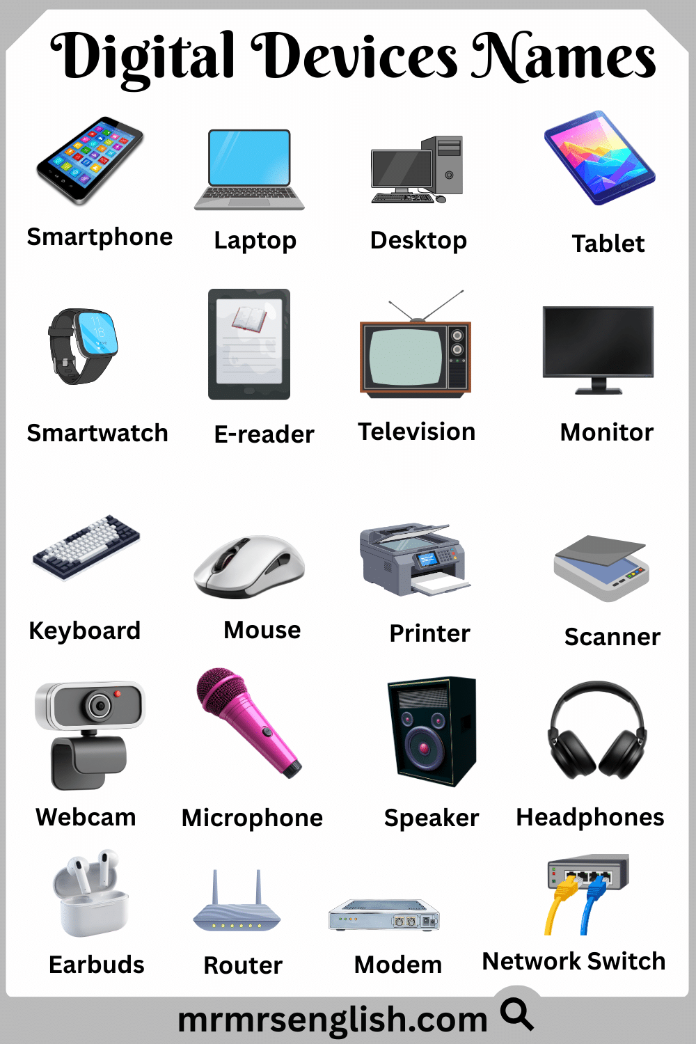 Types of Digital Devices with Names in English
