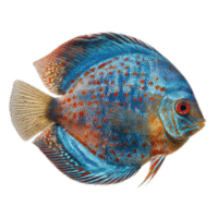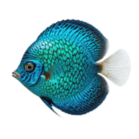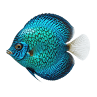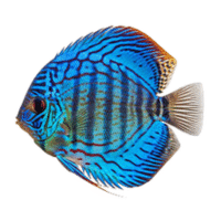 Discus with turquoise body color, peaceful, active swimmer, visually eye-catching, and suitable for community aquariums.