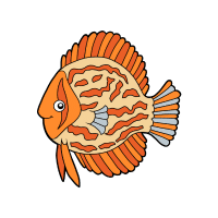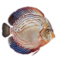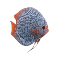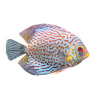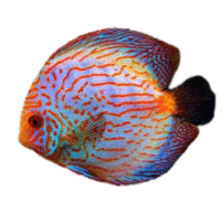 Discus with small spots in snake-like pattern, peaceful, active, and attractive for ornamental tanks.