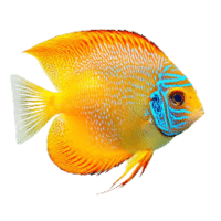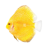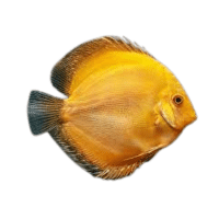 Golden-yellow discus, gentle and calm, thrives in planted tanks with stable warm water conditions.