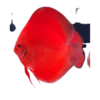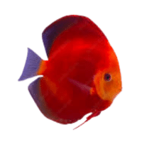 Pure red discus, peaceful, vibrant, easy to maintain in warm, clean, soft water aquariums.