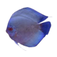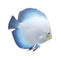 Discus with solid blue body color, peaceful, ideal for community tanks, visually striking in aquariums.