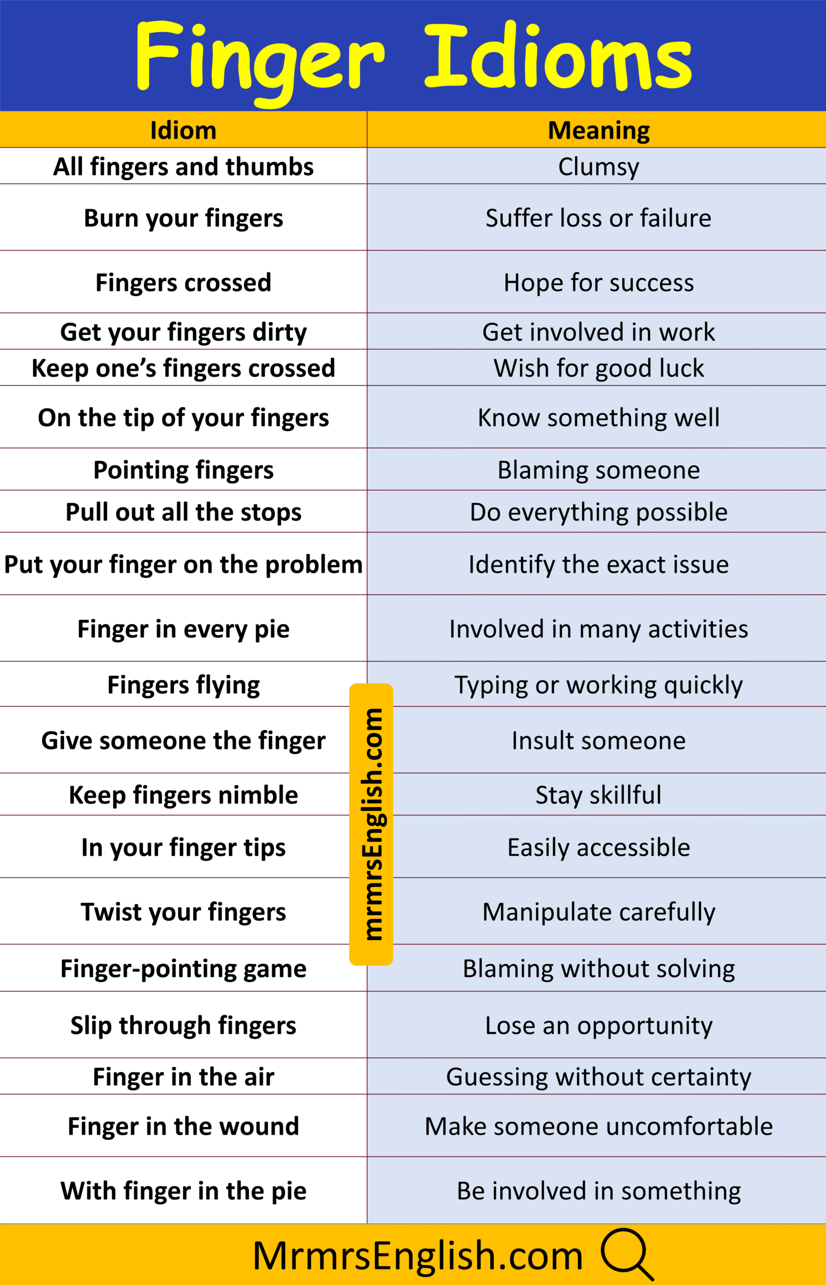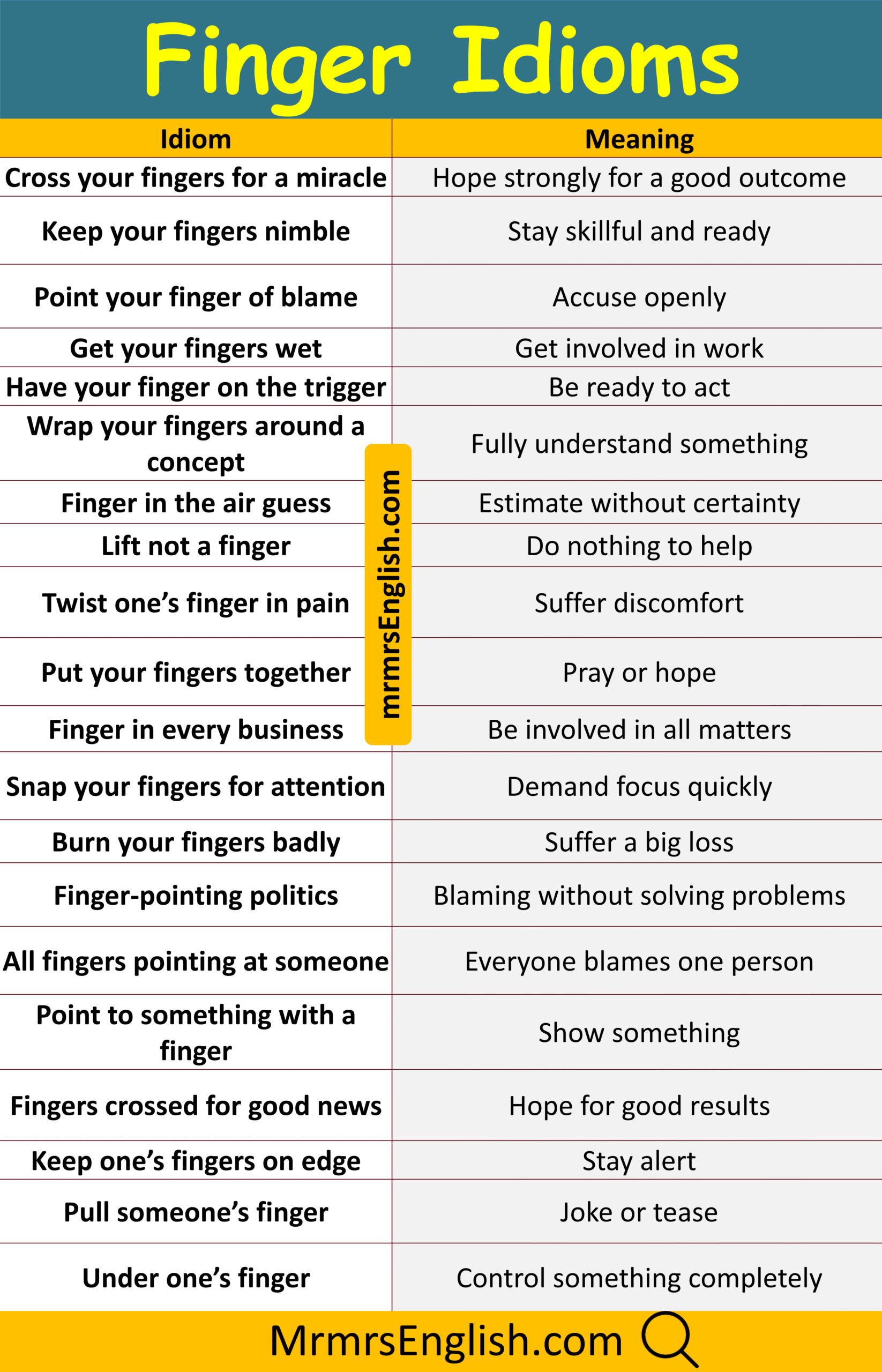 Master Finger Idioms with Meaning and Images