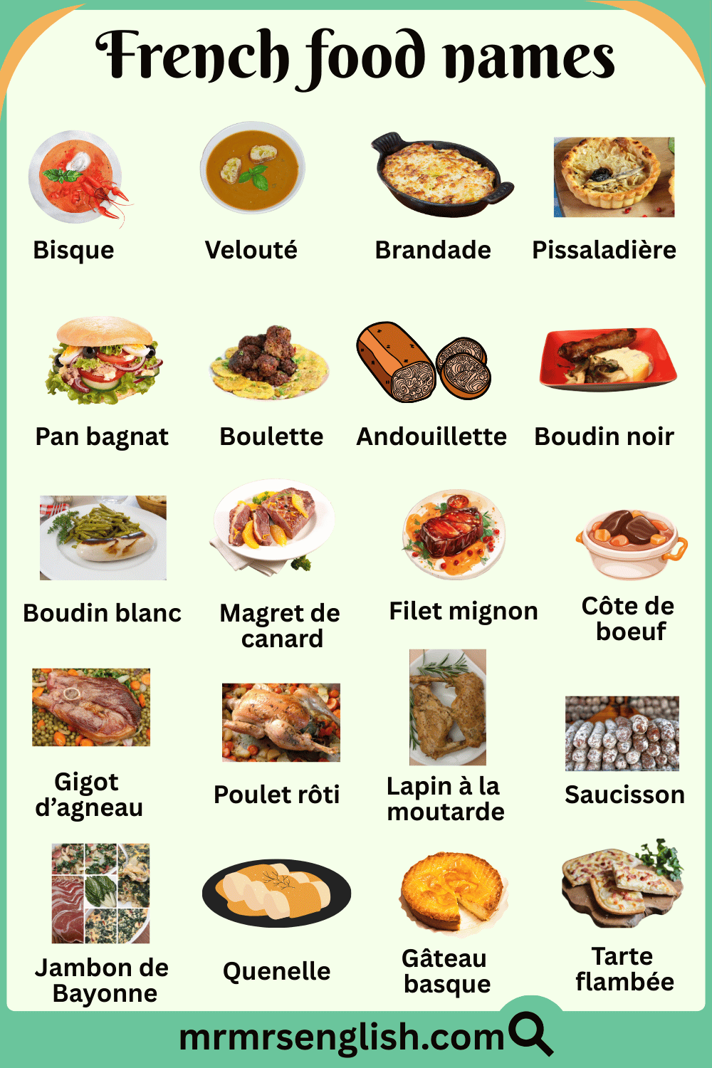 French Foods Names with Their Pictures