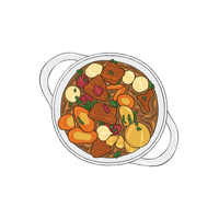 A comforting beef stew cooked with vegetables in broth.