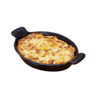 A cheesy potato dish with bacon and onions, baked until golden.