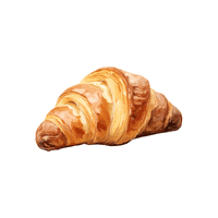 A buttery, flaky pastry shaped like a crescent moon, often eaten for breakfast.