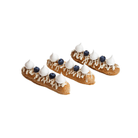 A long pastry filled with cream and topped with chocolate.