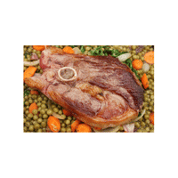 A roasted leg of lamb, often cooked with garlic and herbs.