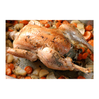 A simple roast chicken, often served with potatoes.